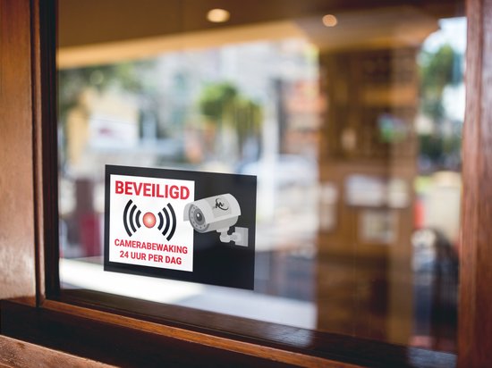 24ME® - 4 Stuks Camerabewaking Stickers - Plakzijde Binnenzijde - Camera stickers - Videobewaking stickers - Alarmstickers -