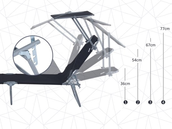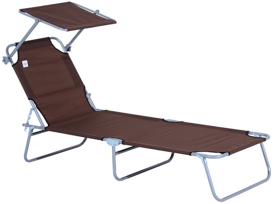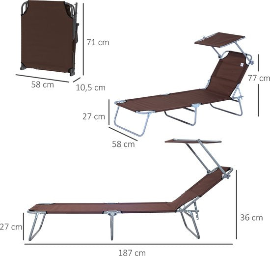 4goodz Ligbed Opvouwbaar met Zonnescherm - Inklapbaar 4 Standen - Bruin