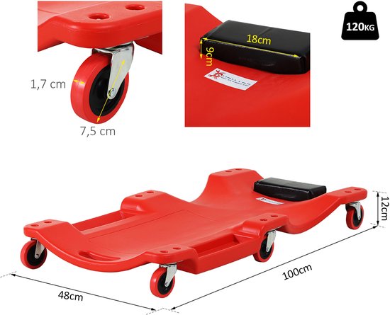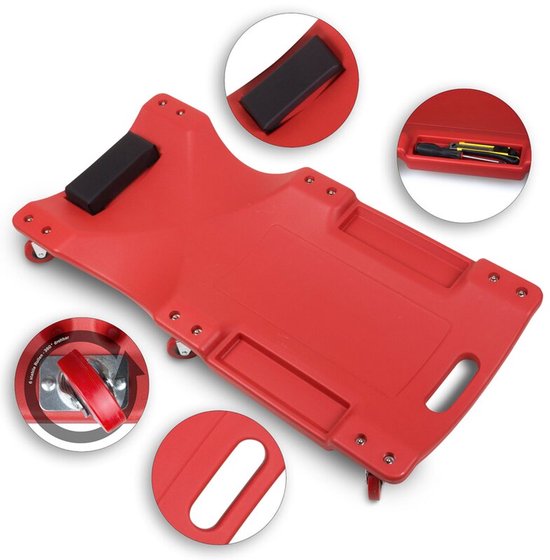 Tijdens de klus werkzaamheden aan een auto zorgt deze monteurskar voor een prettige houding, mede door het zachte hoofdkussen. Hij is voorzien van twee gereedschapbakken (aan elke zijkant één) zodat u uw gereedschap en onderdelen altijd dicht bij de hand heeft en er kleine onderdelen in kunt leggen . Nooit meer zoeken naar de juiste gereedschappen tijdens het klussen dus!