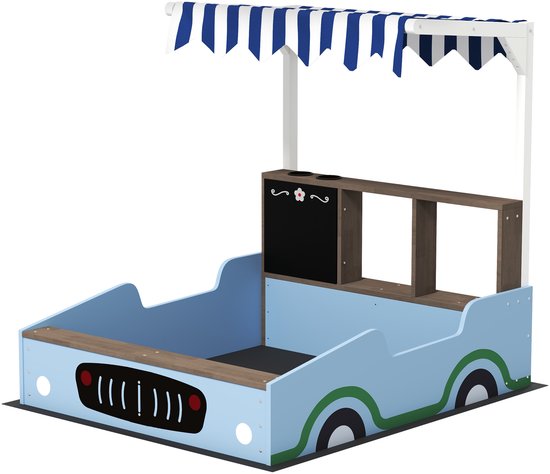 Stimuleer de creativiteit van uw kind met de zandbak met bankje. Deze charmante zandbak, met een auto-ontwerp en gemaakt van hout, dient ook als een klein autocoureur. Kinderen kunnen spelen dat ze zelf op reis gaan. Dankzij het UV-bestendige voordak zijn ze bovendien beschermd tegen te sterke zonnestraling.