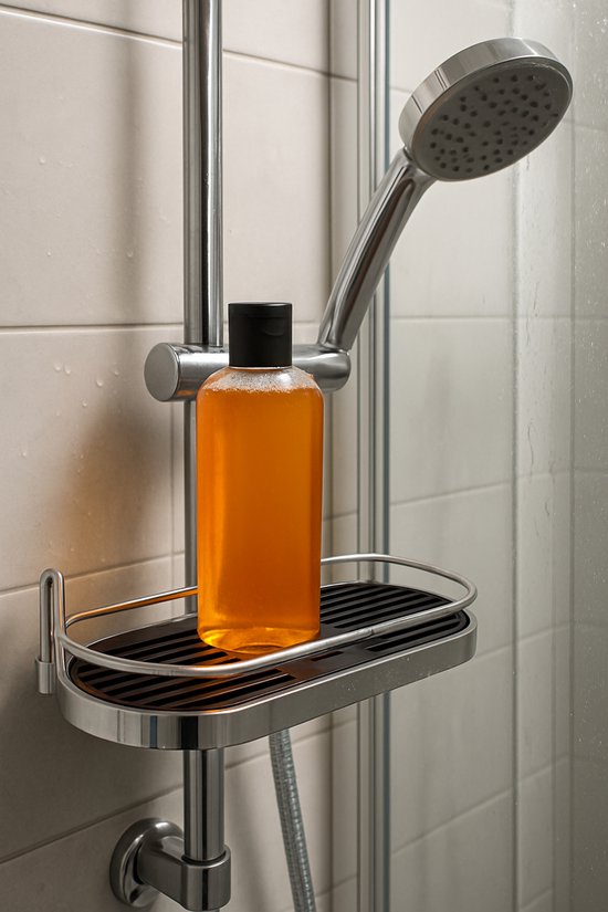 4Goodz zwart chromen doucheplank voor douchestang 30x12x5cm