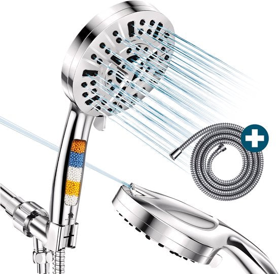 AKSA Home® Douchekop met Slang - Douchekop met Filter - 10 sproeistanden - Regendouche met Hoge Druk - Zilver