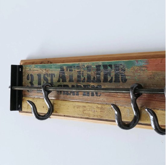 Atelier Kapstok 4 haaks Hout-Metaal 94x16x6 cm - Bruin