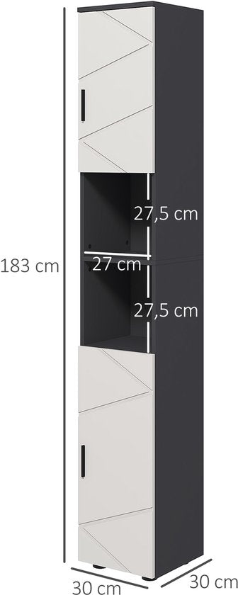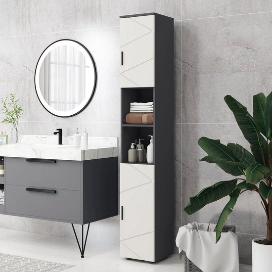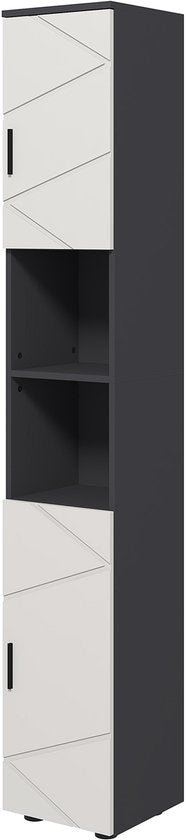 Badkamerkast Kolomkast - 2 deuren en een open vak - Donkergrijs-Wit