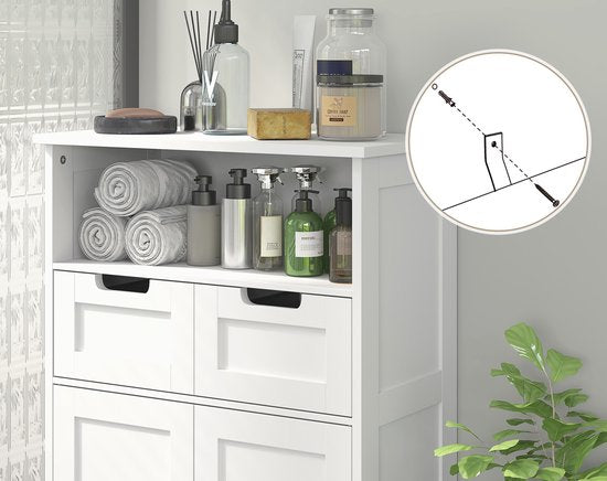 Badkamerkast met 2 Laden, 2 Deuren en open vak 30x60x109 cm - Wit