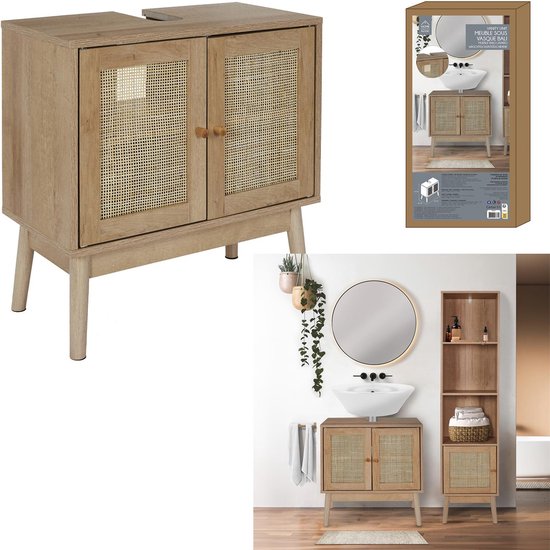 De ruime wastafel onderkast biedt een extra opslagruimte voor uw handdoeken, douche en toilet artikelen, schoonmaakproducten en andere accessoires. Zeker in combinatie met de kolomkast dan heb je een perfecte match in je badkamer en veel opslag ruimte. Het onderkastje past onder elke wastafel en je hebt hiermee snel en eenvoudig extra opslag ruimte de badkamer. Deze wastafelkast en de kolomkast zijn onderdeel van een complete badkamerserie met bamboe dessin meubels, serie Bali. Hierdoor heb je een matchende set in je badkamer, die je eventueel nog kunt uitbreiden met een middelhoge kast en toiletrolhouder.