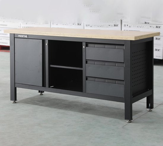 Feistos Werkbank Heros 1 inclusief geperforeerde wand 169x60x87cm - Antraciet-zwart