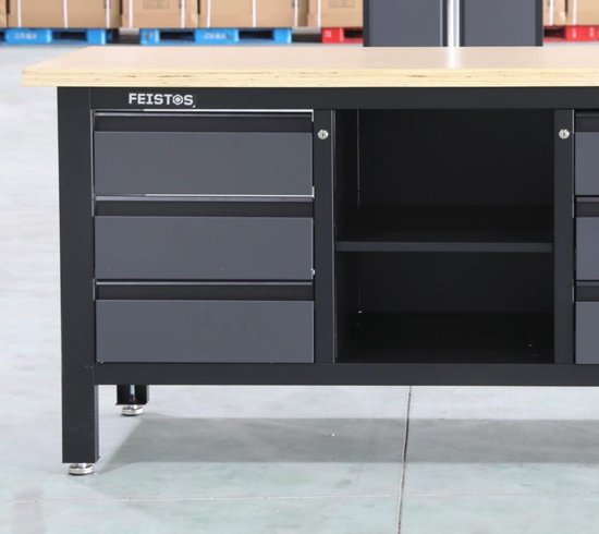 Feistos Werkbank Heros 3 - incl. geperforeerde wand - Antraciet-zwart - 60x169x87cm