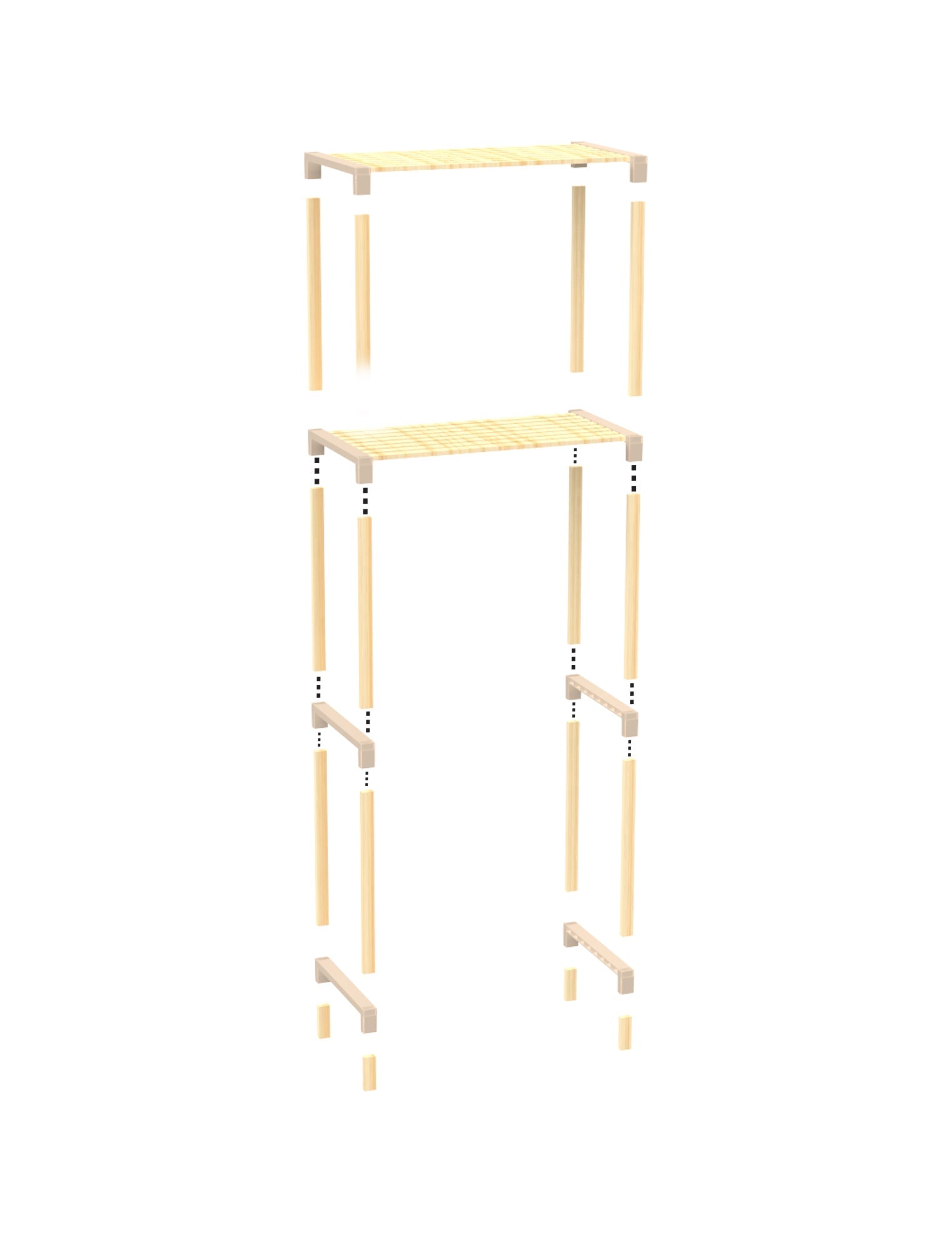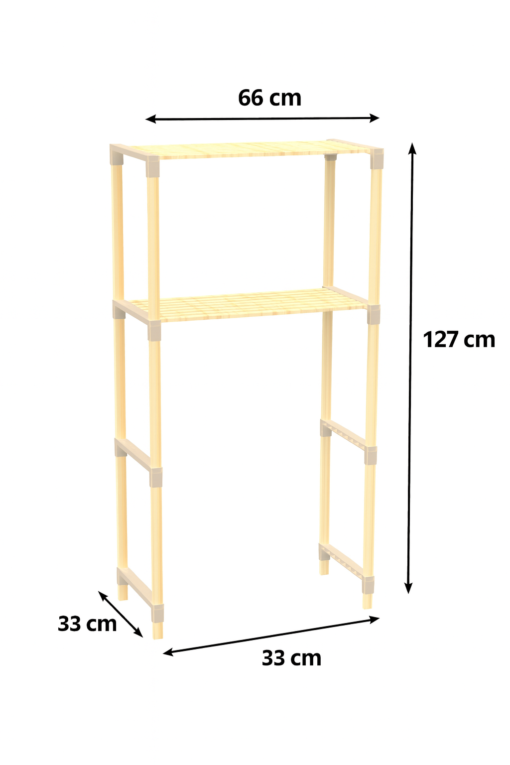 FixWood 2-Laags Wasmachine Rek – Beige - Houten Opbergrek voor Wasmachine – Ruimtebesparend Badkamerrek 127 cm – Beukenlook – 33x66x127 cm