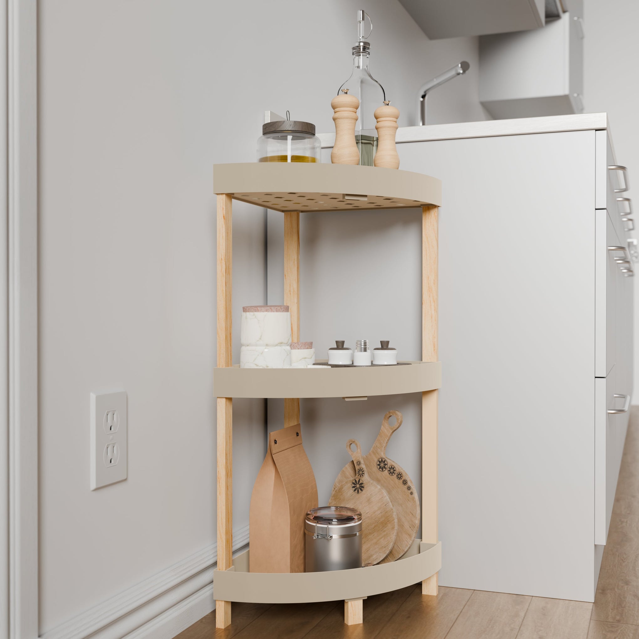 FixWood Houten Hoekrek – 3-Laags Organizer – Compact Badkamer- en Keukenrek – 75 x 44 cm