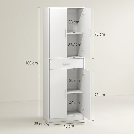 Grote Keukenkast met 1 lade en 4 kastdeuren - Wit