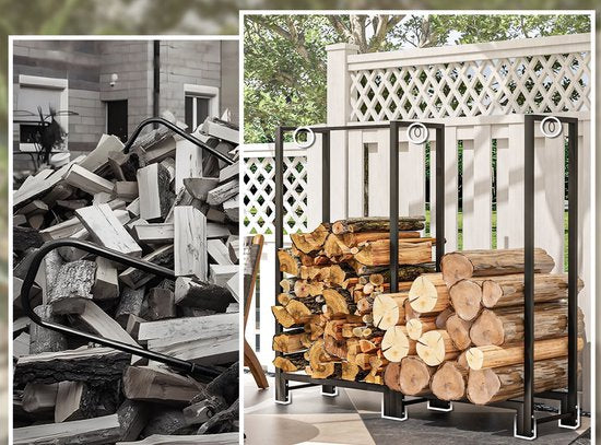Haardhoutrek 123 cm Tot 200 kg - Houtopslag Staal - Zwart