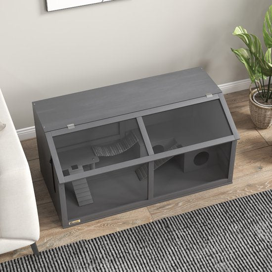 Houten Hamsterkooi met Houten Huis 52x100x50 cm - Grijs