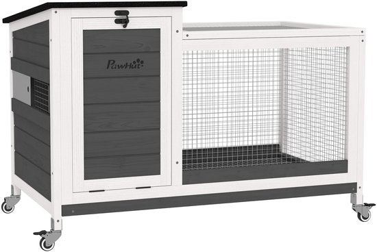 Houten Konijnenhok met Loopgedeelte - voor Binnen & Buiten 92x52x67 cm - Grijs