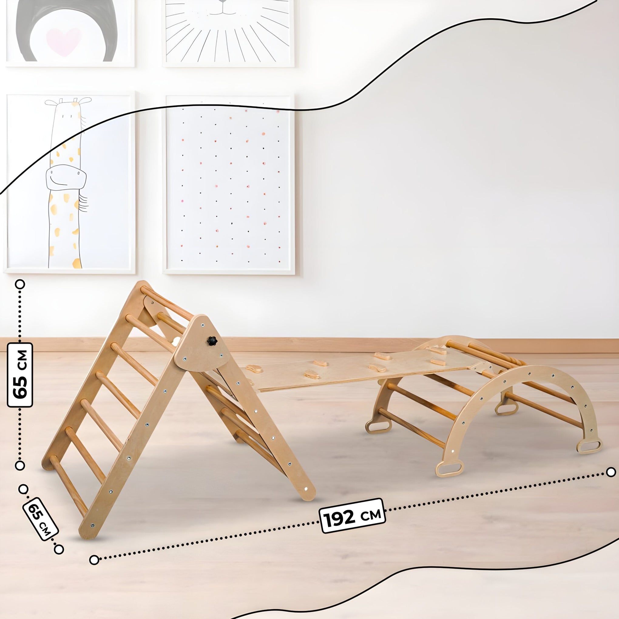 Maak kennis met het klimrek van Oemmie! Dit veelzijdige houten klimrek is perfect voor binnen én buiten en stimuleert de ontwikkeling en creativiteit van je kind. Met een Montessori-geïnspireerd ontwerp, stevig en duurzaam hout, CE-certificering en afgeronde randen, biedt dit klimrek een veilige en leuke speelervaring. Laat je kind genieten van actief speelplezier terwijl ze hun motoriek en zelfstandigheid verbeteren!