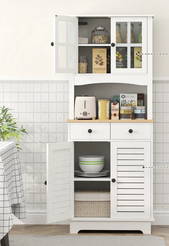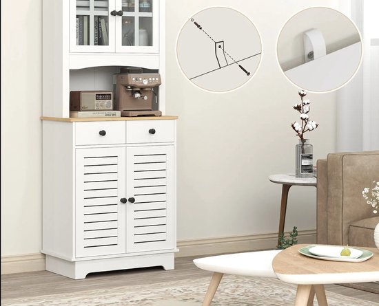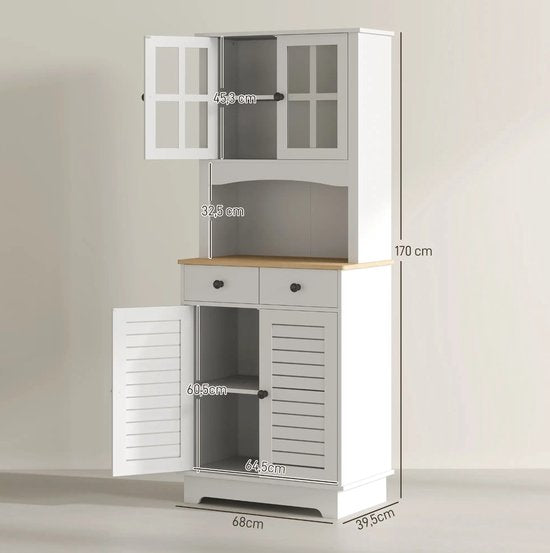 Klassieke Buffetkast Hoog met 2 matglas deuren 39x68x170 cm - Wit