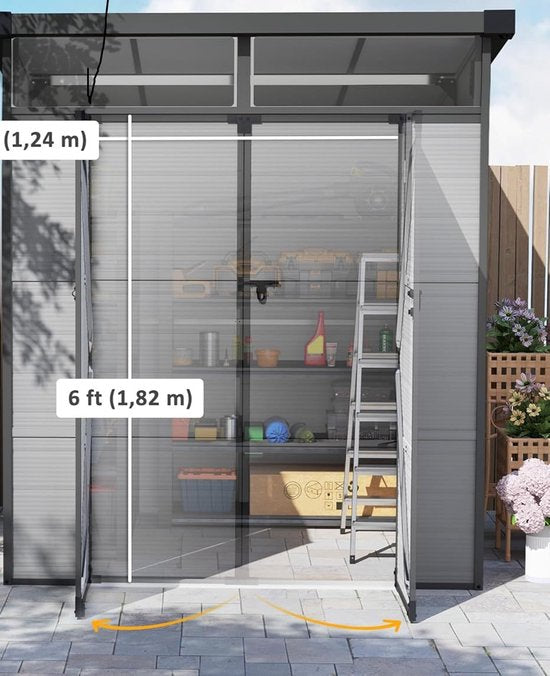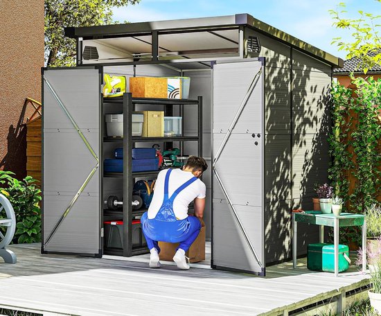 Kunststof Tuinschuur met afsluitbare deuren - Grijs