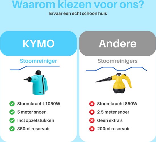 Bestel de KYMO handstoomreiniger vandaag nog en ervaar het gemak van snel, veilig en milieuvriendelijk schoonmaken in je hele huis!