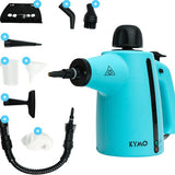De KYMO handstomer is een krachtige reiniger die geschikt is voor het grondig reinigen en ontsmetten van allerlei oppervlakken. Het apparaat wordt geleverd met verschillende opzetstukken, zoals een stoffeeringsmondstuk, ronde borstel en een schuin mondstuk, waarmee je eenvoudig voegen, banken, stoelen, spiegels, ramen, grills en meer kunt schoonmaken. Of je nu muffe geuren uit je auto wilt verwijderen, je ramen streeploos wilt reinigen of rimpels uit je kleding wilt stomen, deze multifunctionele stoomreiniger kan het allemaal.