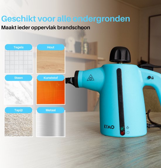 De KYMO stoomreiniger is niet alleen krachtig, maar ook veilig en gebruiksvriendelijk. Met zijn kind veilige vergrendeling en compacte ontwerp kun je zorgeloos schoonmaken. Bovendien kan het apparaat meer dan 10 minuten continu stomen, ideaal voor langere reinigingssessies.