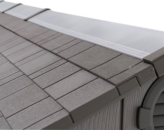 De robuuste Lifetime gereedschapsschuren zijn ontworpen voor buitengebruik het hele jaar door en zijn absoluut weer- en UV-bestendig. De grote dubbele deur zorgt voor gemakkelijke toegang en opslag van uw apparatuur. Dankzij het ruwe wandoppervlak in donkergrijs (“Rough-Cut”) wordt de gereedschapsschuur niet alleen een praktische schuilplaats voor uw gereedschap en tuingereedschap, maar ook een echte blikvanger in uw tuin. Ook over het onderhoud van de schuur hoeft u zich geen zorgen te maken: het hoogwaardige kunststof is uiterst onderhoudsvriendelijk en onderhoudsvrij.
