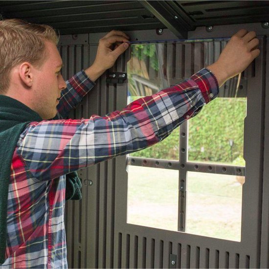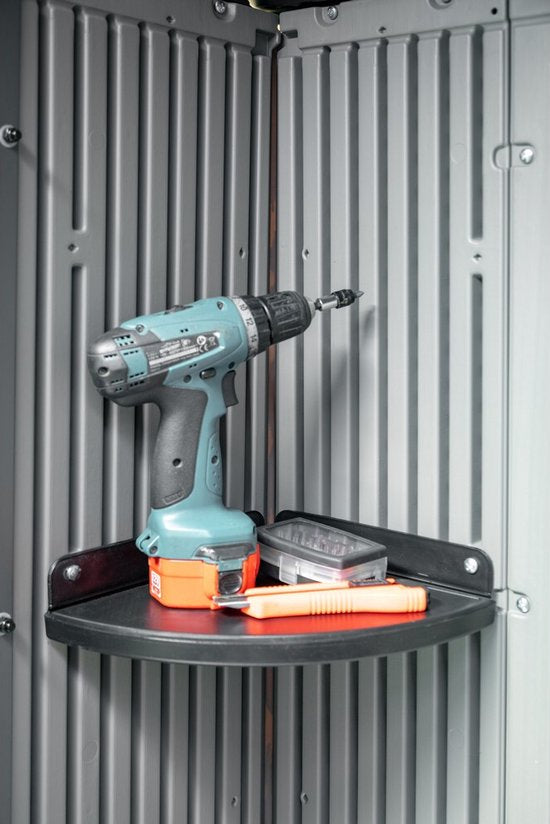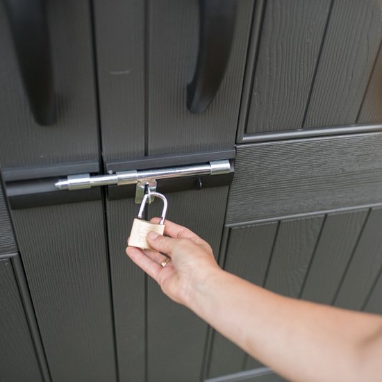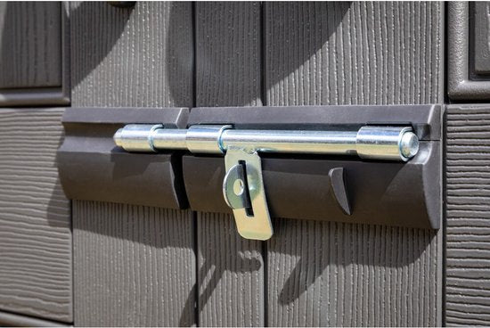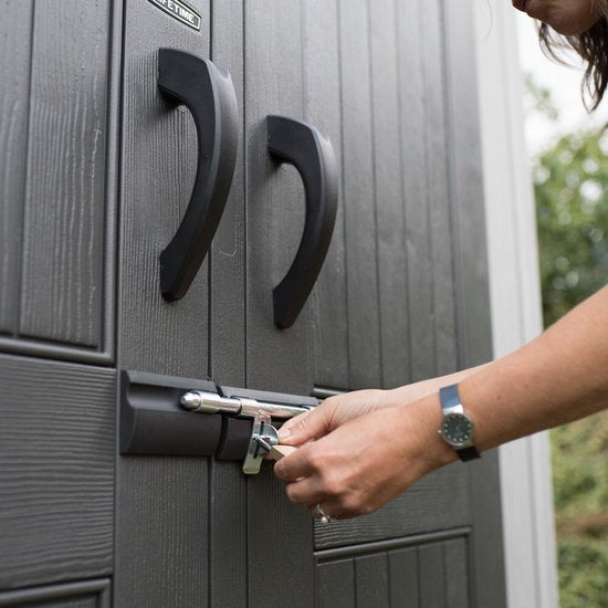 De robuuste Lifetime gereedschapsschuren zijn ontworpen voor buitengebruik het hele jaar door en zijn volledig weer- en UV-bestendig. De grote dubbele deur zorgt voor gemakkelijke toegang en opslag van uw apparatuur. Dankzij het ruwe wandoppervlak in donkergrijs (“Rough-Cut”) wordt de gereedschapsschuur niet alleen een praktische schuilplaats voor uw gereedschap en tuingereedschap, maar ook een echte blikvanger in uw tuin. Ook over het onderhoud van de schuur hoeft u zich geen zorgen te maken: het hoogwaardige kunststof is uiterst onderhoudsvriendelijk en onderhoudsvrij.