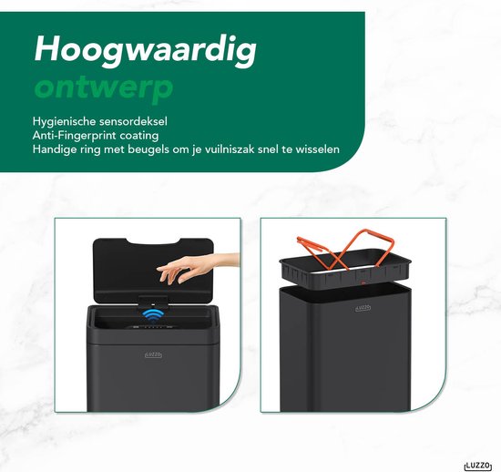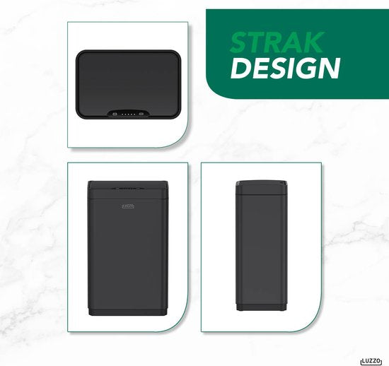 Luzzo® Iowa Black Prullenbak met Sensor 50 Liter - mat Zwart