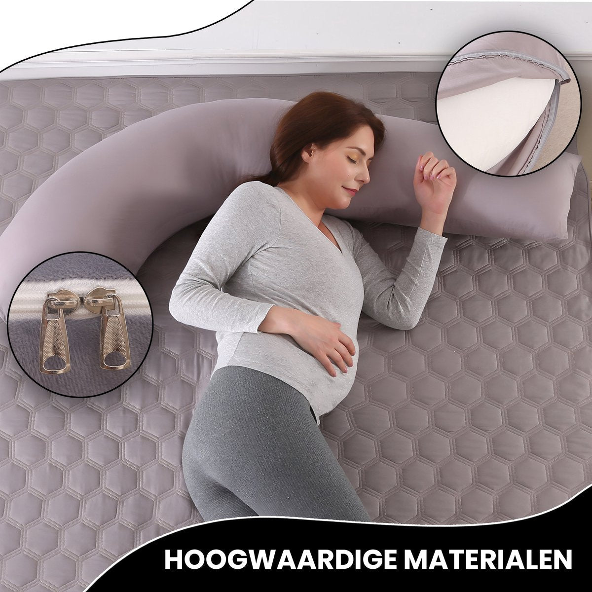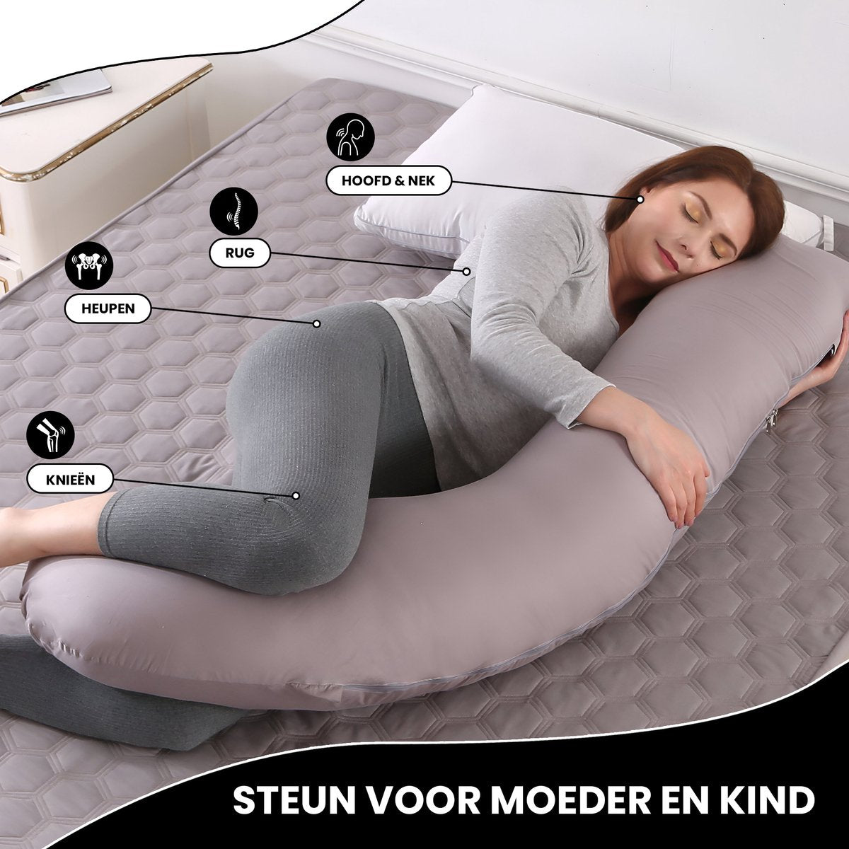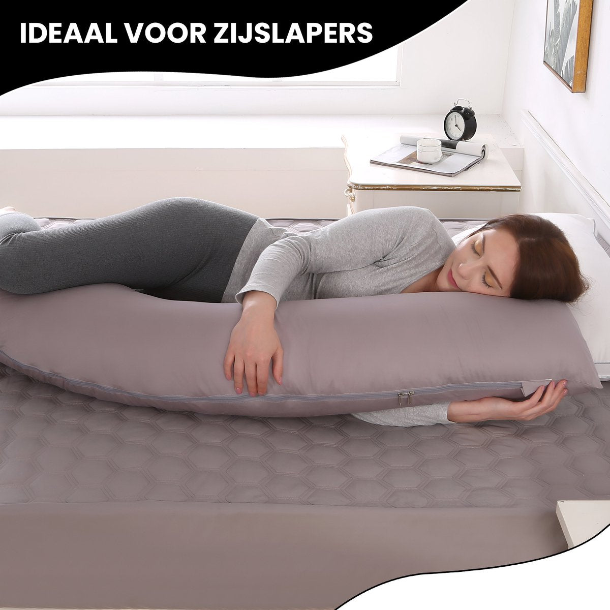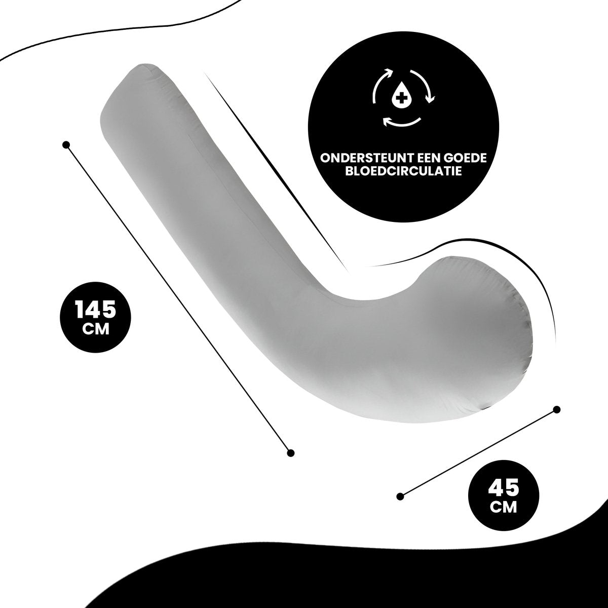 Oemmie Zwangerschapskussen - Voedingskussen - Zijslaapkussen - Lichaamskussen - J-vorm - 145x45 cm - Grijs