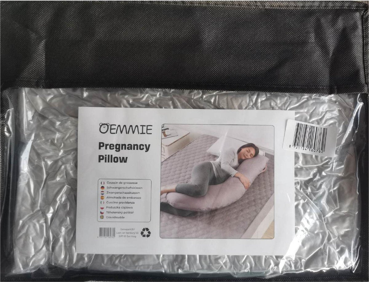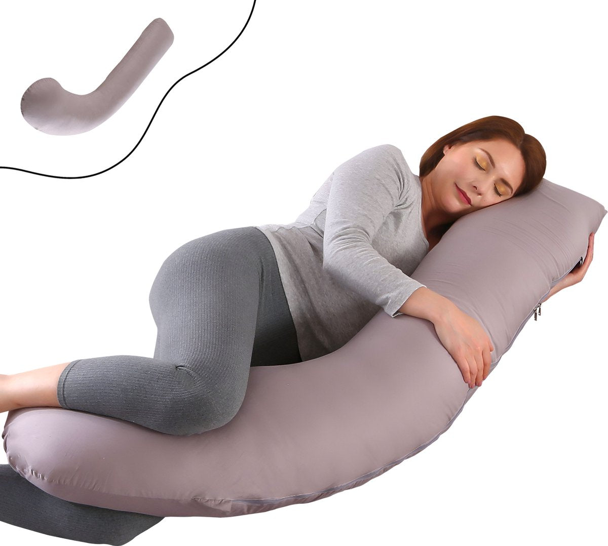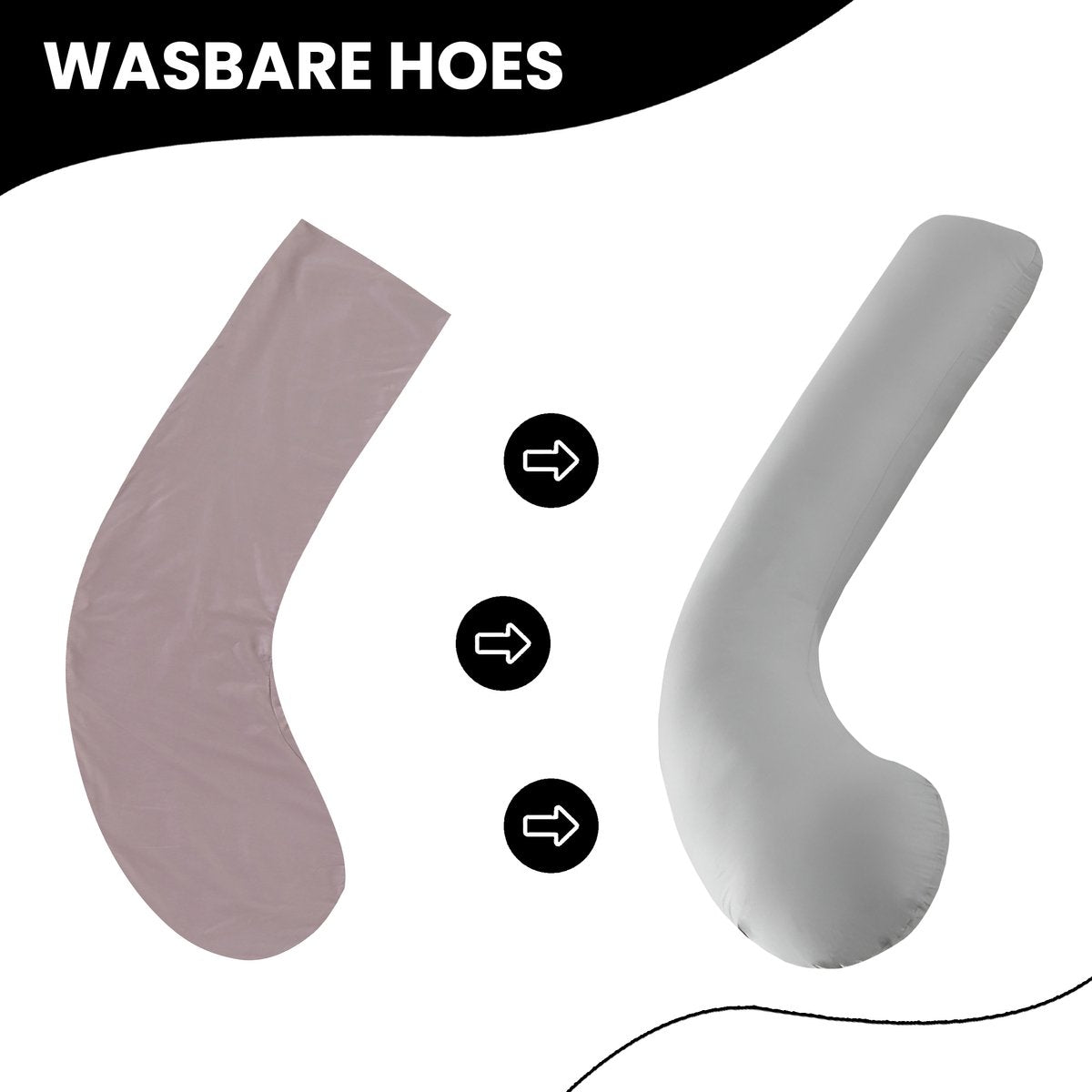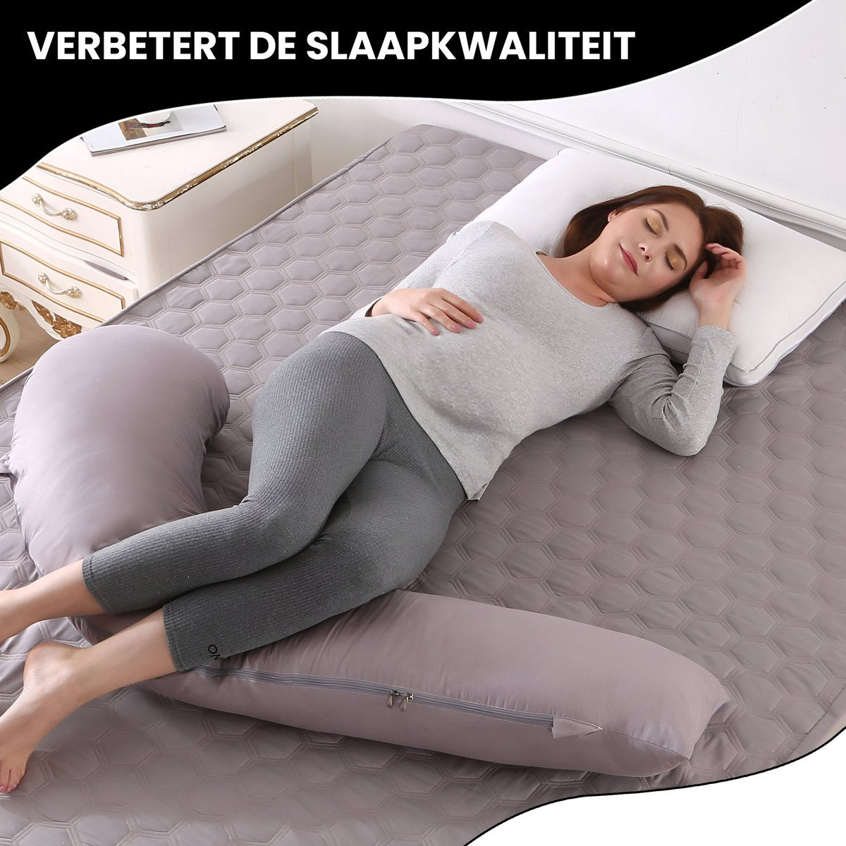Oemmie Zwangerschapskussen - Voedingskussen - Zijslaapkussen - Lichaamskussen - J-vorm - 145x45 cm - Grijs