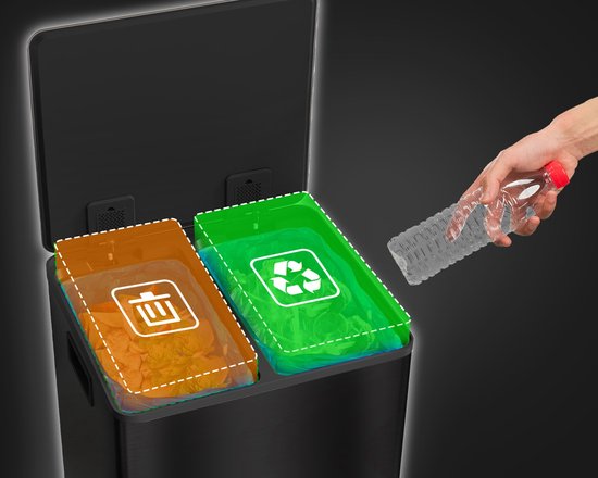Pedaalemmer met 2x25L compartimenten - Soft-Close deksel - Zwart
