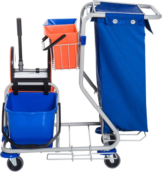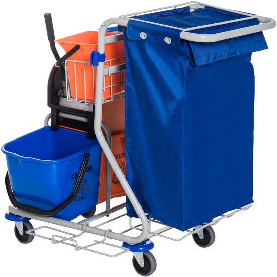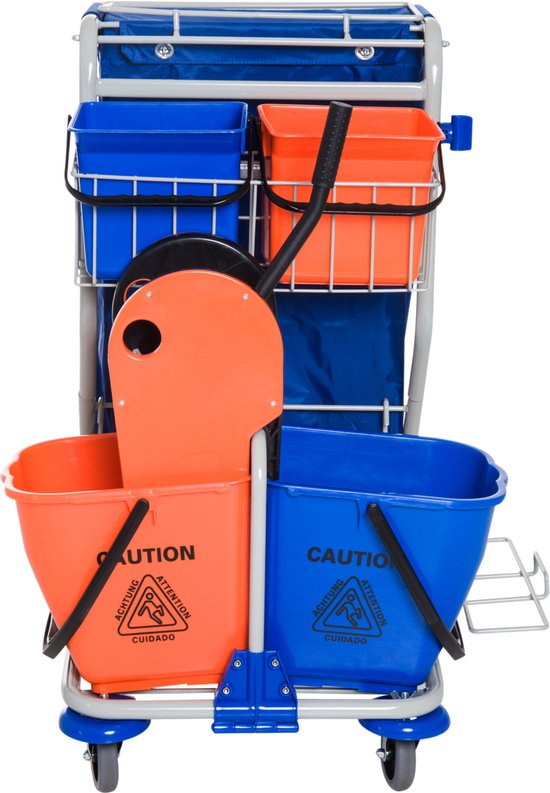 Schoonmaakkar Schoonmaakwagen met Wringer en 4 emmers met wielen
