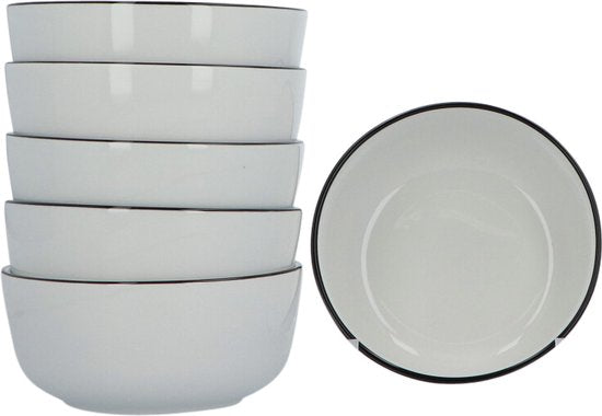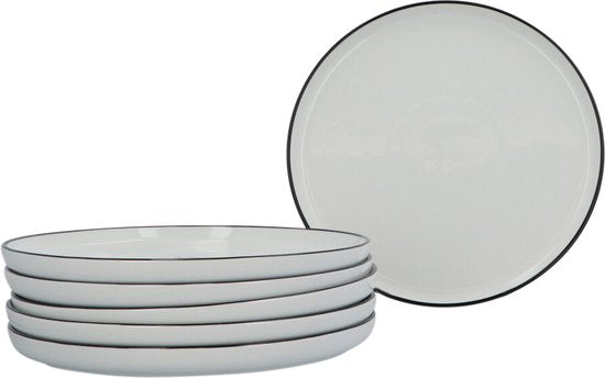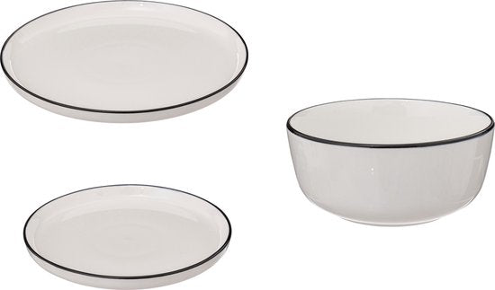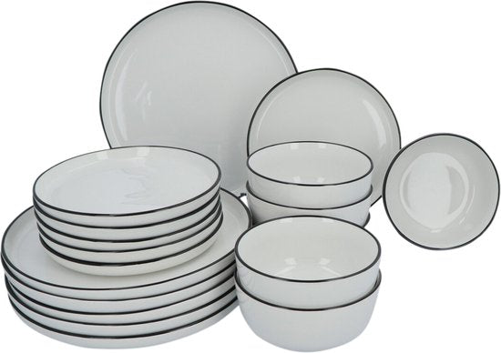 Serviesset Porselein Alix 6-persoons 18 delig - wit met Zwarte rand
