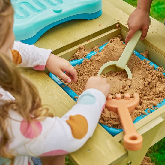 Uw kinderen kunnen de zandtafel gebruiken om speelkastelen of zandkastelen te bouwen die voor urenlang speelplezier zorgen. Het tafelblad van de watertafel is afneembaar zodat je met water kunt spelen. Bovendien zorgt het afneembare tafelblad voor droog en schoon zand in de speeltafel.
