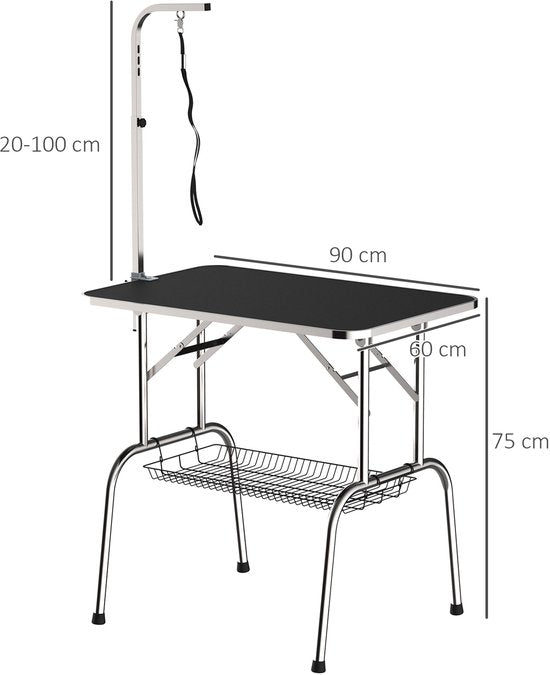 Trimtafel Hond - Hoogteverstelbaar - Opbergkorf - Zwart