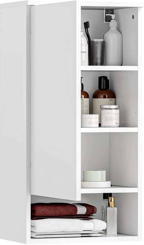 Wandkast voor de Badkamer met Verstelbare Planken en Open Vak - Wit