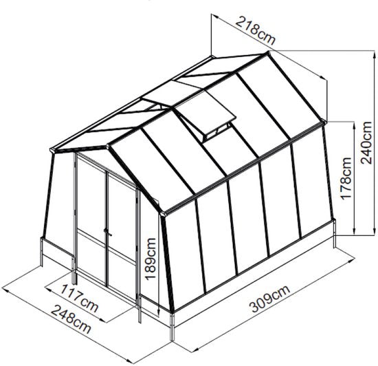 Westmann Aurora 810 - TuinKas met fundering - Antraciet 309x248 cm