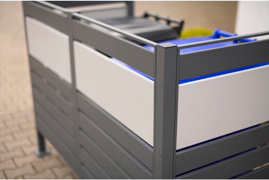 • Ruimte voor: 2x 240l vuilnisbakken