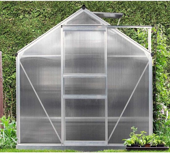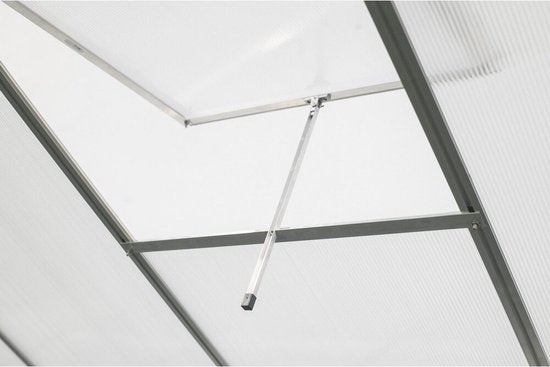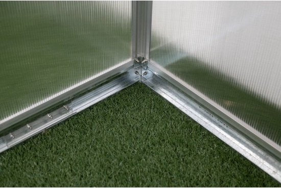 Het frame van de tijdloze kas is gemaakt van duurzaam en roestbestendig aluminium. Voor het dak en de zijpanelen van de kas zijn 4 mm polycarbonaat dubbelwandige platen gebruikt. De panelen zorgen voor een optimale isolatie en bevorderen ideale lichtomstandigheden in de kas. Het meegeleverde dakraam zorgt voor extra ventilatie en een betere luchtcirculatie in uw kas. De constructie van de kas is uiterst eenvoudig: de profielen en verbindingen worden in elkaar gestoken en aan elkaar geschroefd. Het hoogtepunt: de zij- en dakpanelen worden eenvoudig in de profielen geschoven en zijn daardoor wind- en weerbestendig. Transformeer uw tuin in een productieve ruimte met de Florakas van Westmann!