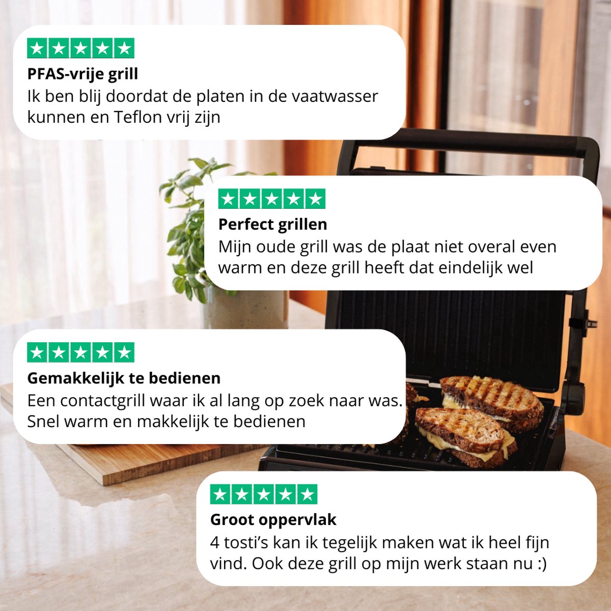 Safecourt Kitchen - Contactgrill 3-in-1 - Tosti-apparaat, Tosti-ijzer & Grillplaat - Uitneembare Platen - PFAS-Vrij - Zwart