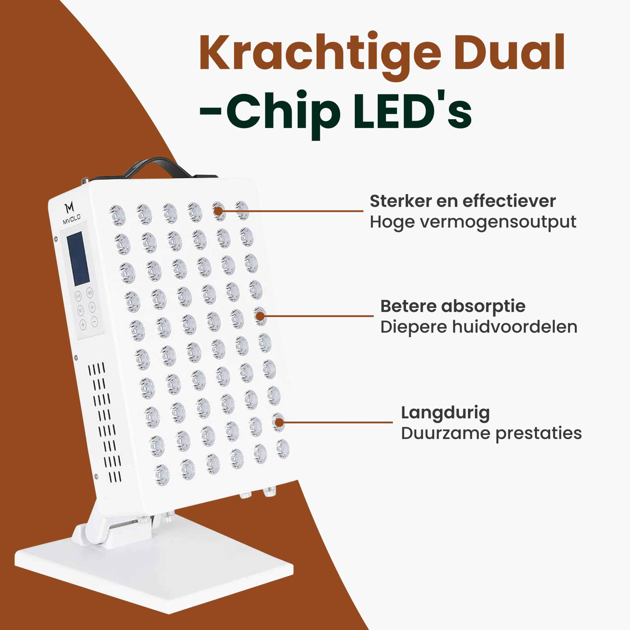 Met de Mvolo Elite Series 306 haal je een krachtig, veelzijdig en professioneel rood- en infraroodtherapiesysteem in huis. Bestel vandaag nog en ervaar binnen enkele weken merkbare verbeteringen in je gezondheid, huid en energieniveau.