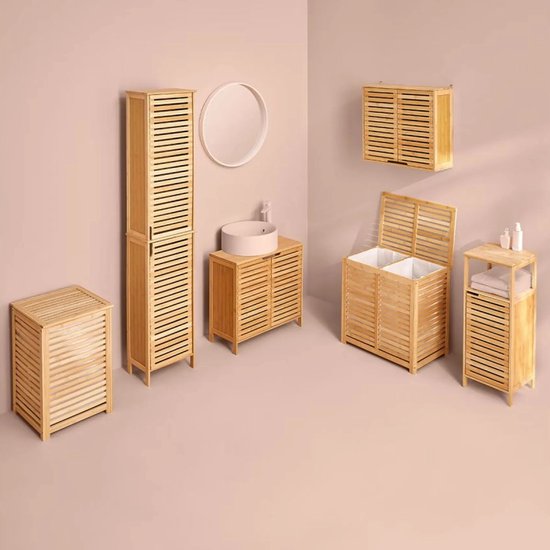 5Five® Sicela Bamboe Wasmand met 2 vakken - 110 liter - Bruin