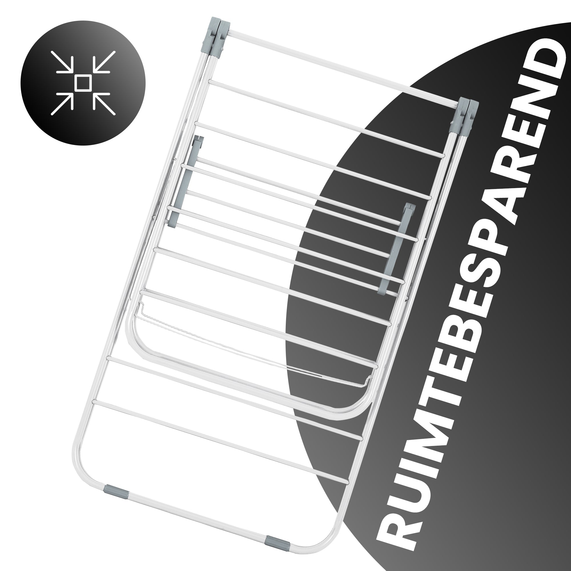 Wanneer je het droogrek niet gebruikt, kun je het eenvoudig opvouwen tot een compact formaat. Ideaal voor kleinere woonruimtes: je kunt het gemakkelijk opbergen in een kast, onder een bed of achter een deur.