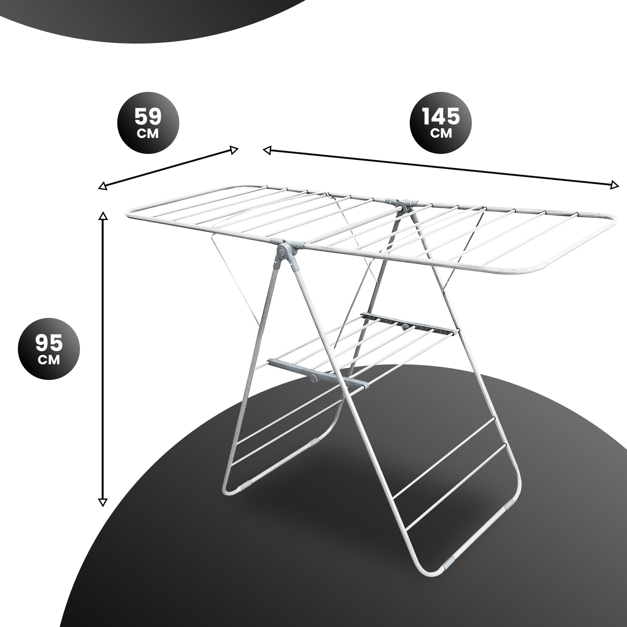 Het Vonia droogrek biedt voldoende ruimte om al je wasgoed efficiënt te drogen. Dankzij de meerdere droogstangen kun je kledingstukken, handdoeken en beddengoed netjes spreiden voor een snelle droogtijd.