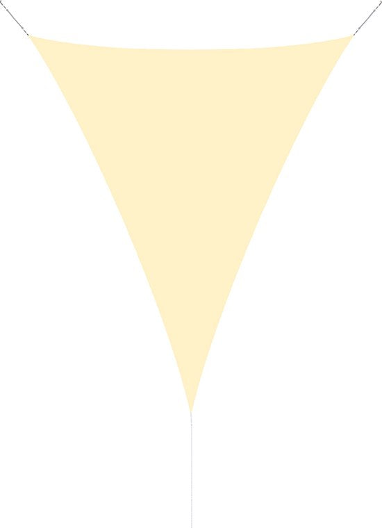 Gelijkbenig driehoekig schaduwdoek, afmeting: 350X350X495 cm. Het UV bestendige doek is waterafstotend en weerbestendig.