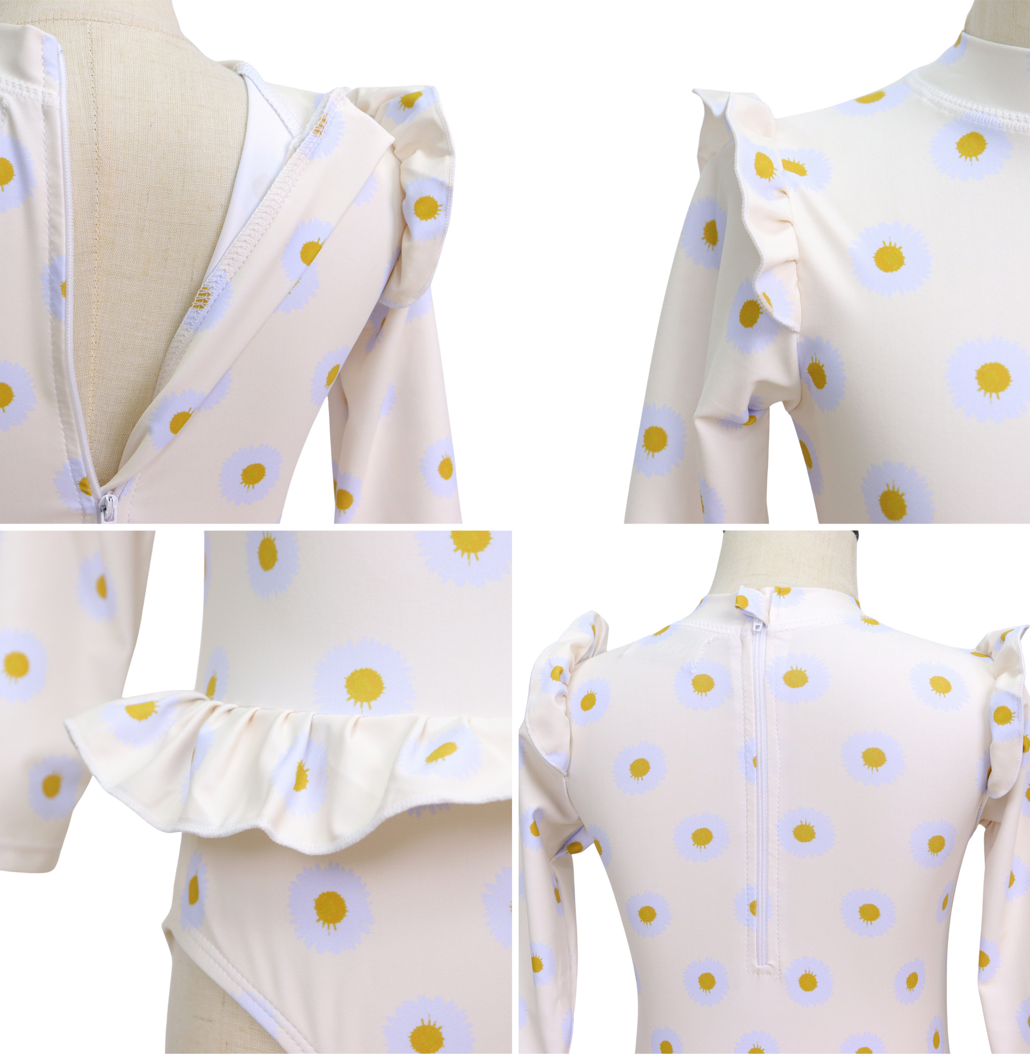 • Schattig design: Gebroken Wit Bloemenprint Madeliefjes met ruches voor een zomerse, vrolijke look