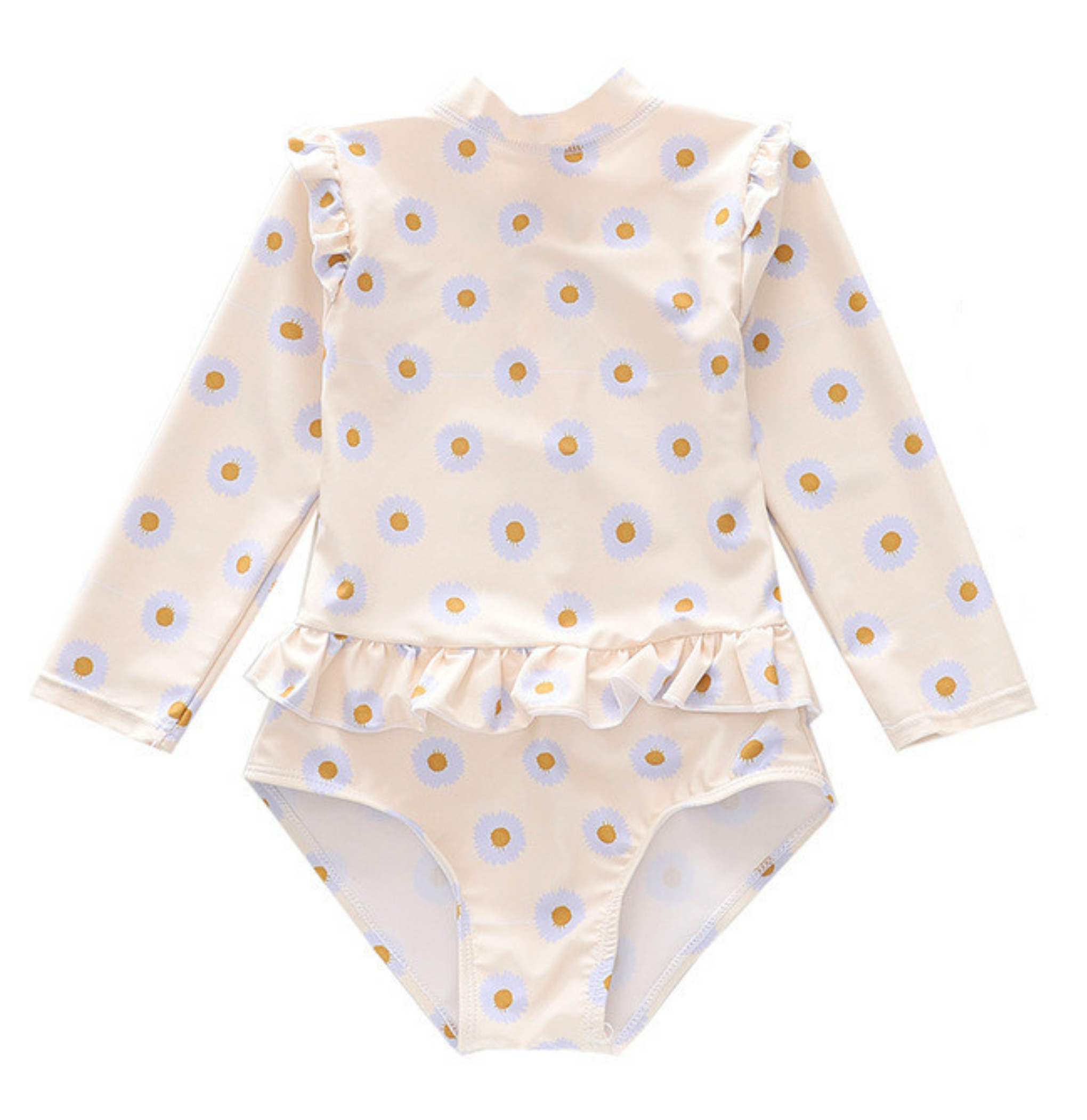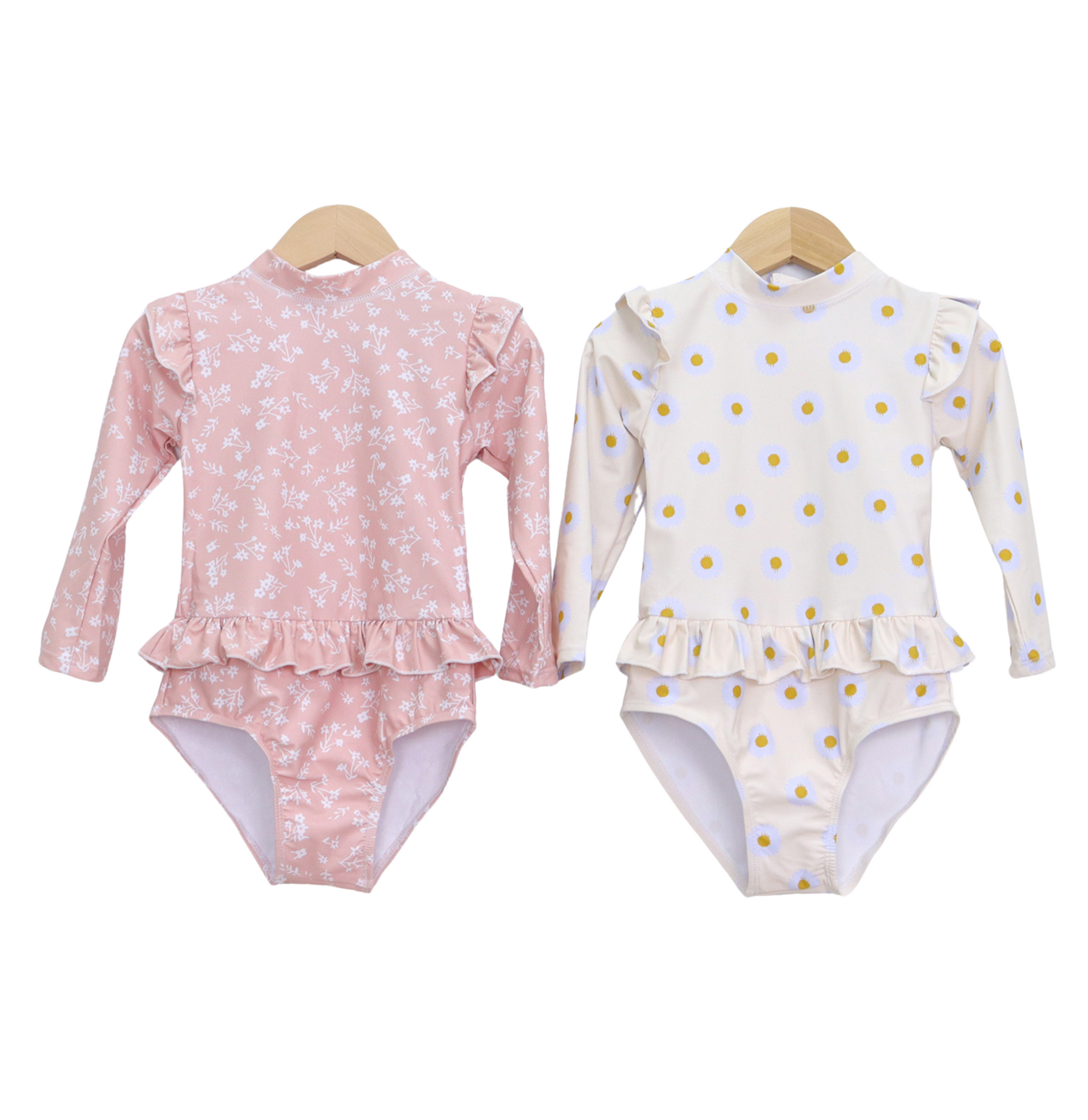 Badpak Lange Mouw Gebroken Wit met Bloemen print met Ruches Meisjes