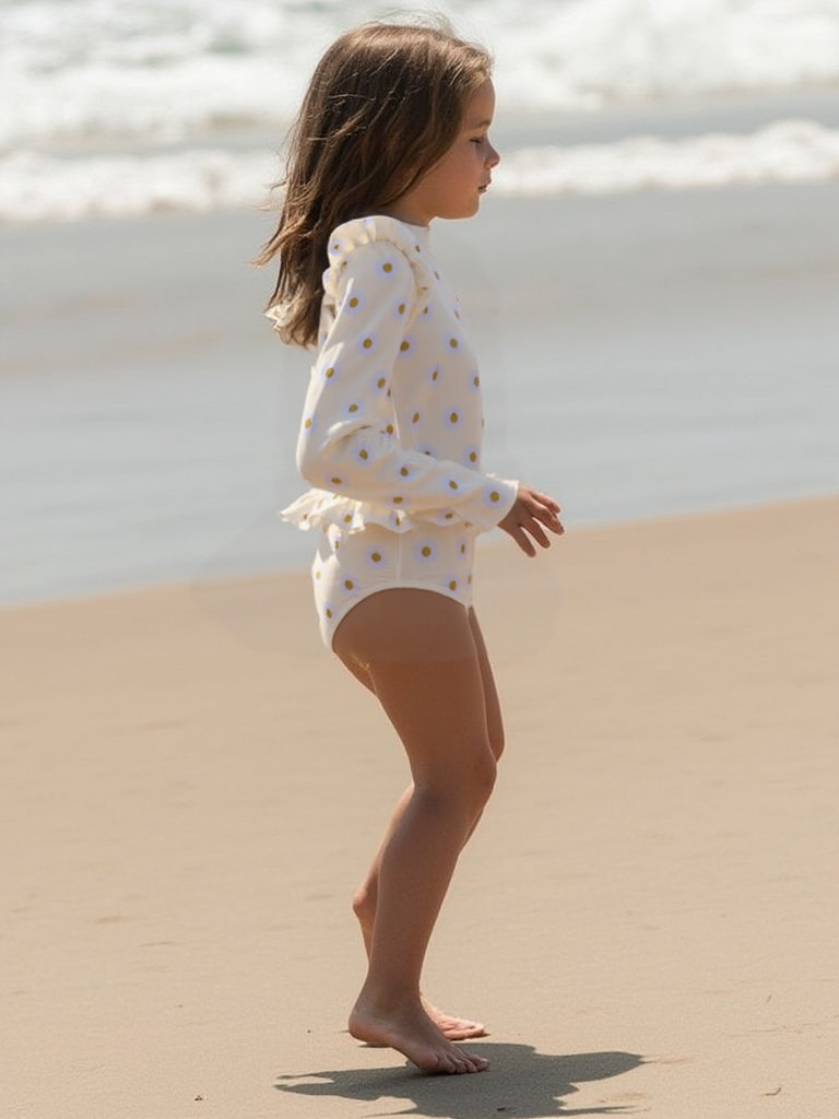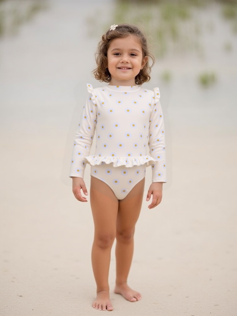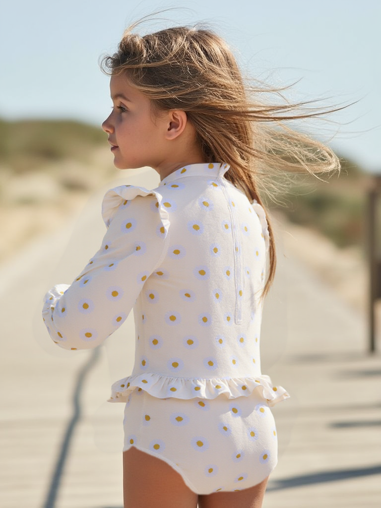 Of je nu op het strand bent, bij het zwembad of gewoon in de achtertuin: dit UV-beschermende kinder badpak met lange mouwen is een veilige én schattige keuze voor meisjes van 2 tot 8 jaar.