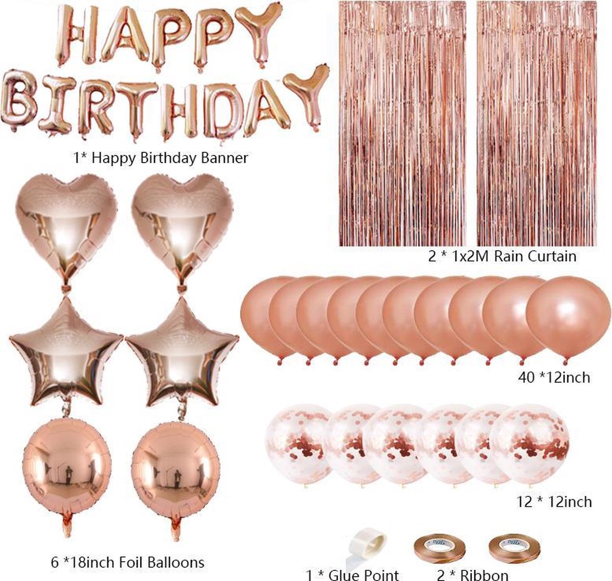 Rose Goud Verjaardag Versiering 79 stuks