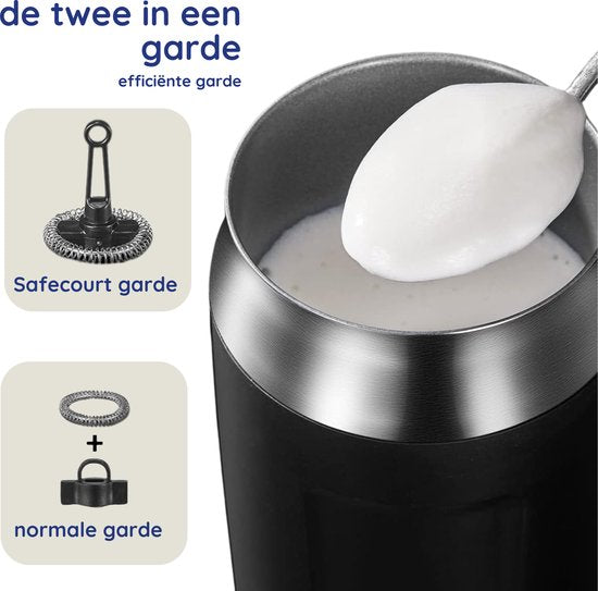 Safecourt Kitchen Melkopschuimer - Elektrische melkopschuimer - Zwart - 4-in-1 - 500W - PFAS-vrij