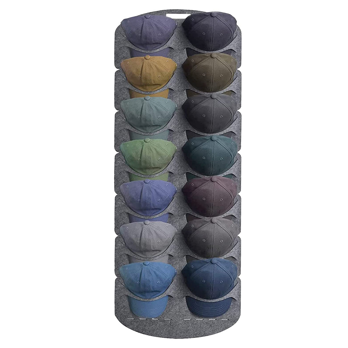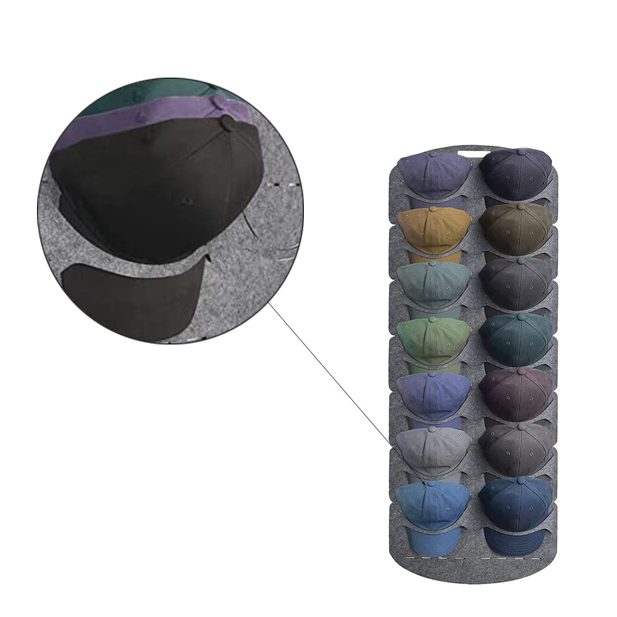 Cap Rack - Petjes Organizer voor aan Deur - Grijs - 14 Petten - Organizer voor Petjes en Caps - Petjes Opbergsysteem - Vilt - Petten Houder - Petten Opbergzak - Hat Holder - 130 x 46 cm